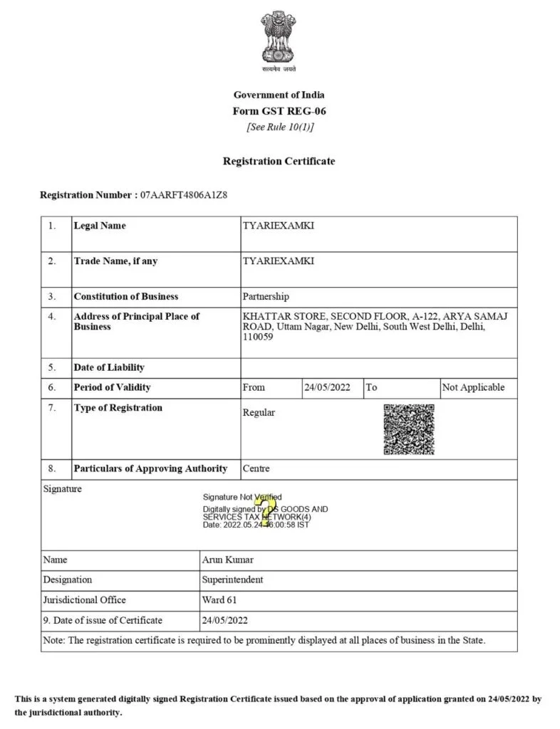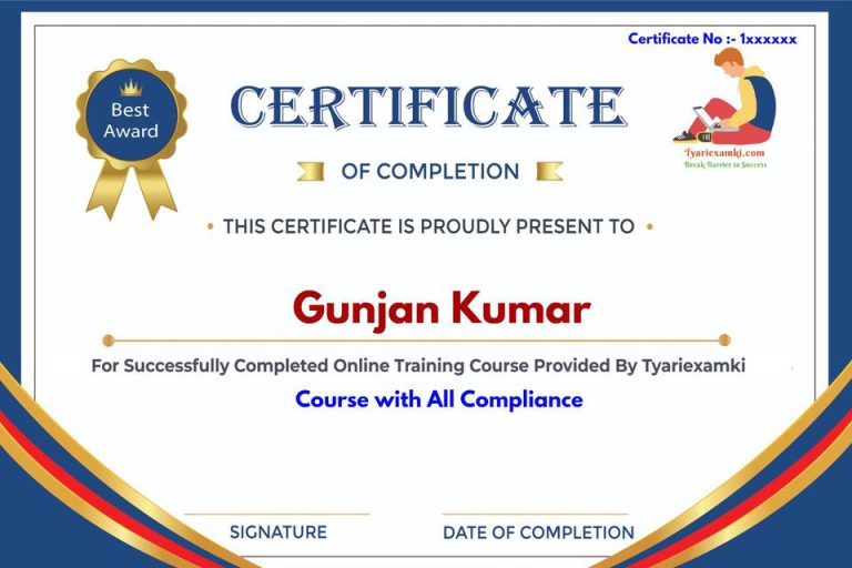 This certificate validates the successful completion of the online training Course by Tyariexamki. It represents dedication, knowledge, and expertise in ROC Incorporation and Compliance Filing.